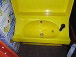 Ablagen auf Schreibtische fürs Büro gebraucht, Badeinrichtung im Schrank fürs Büro Büroküche mit Spülmaschine und Inventar.