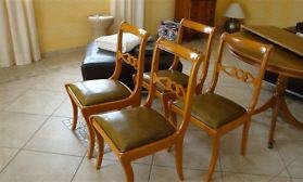 gebrauchter Tisch mit 4 grüne Leder Stühle
