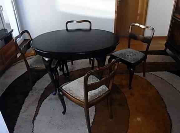 schwarzer Tisch mit 4 Stühlen
