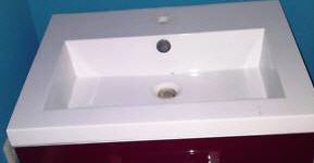 Handwaschbecken mit rotem Unterschrank